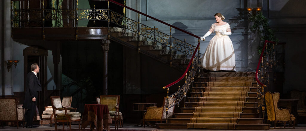 Bass-baritone Konieczny is superb as the dashing count from the country dropped into the modern melting urban pot, with an impressive vocal and acting performance, whilst Willis-Sørensen is compelling as the young noblewoman in search of love on her own terms with her vocal reflecting the charm and innocence of different times. Combined, Willis-Sørensen and Konieczny are the perfect pairing, matched in every sense, and an absolute oy to watch.