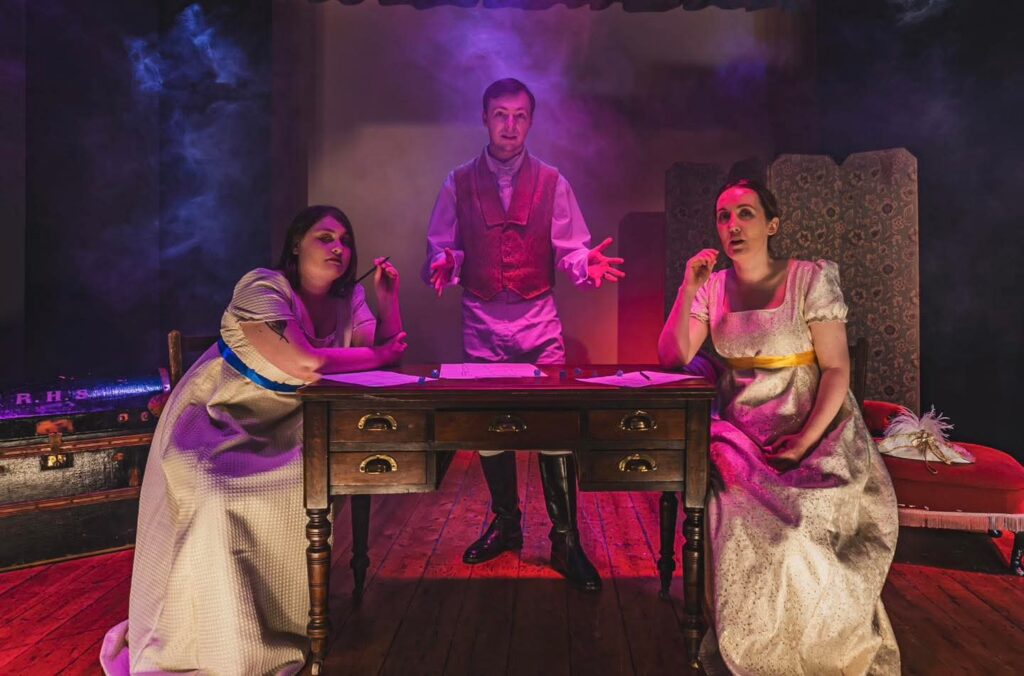 Well not a lot, funnily enough, as this talented trio rip-roar their way through Austen’s most famous novels – and some of her lesser known and incomplete ones as well as her letters – delivering an informative and comical summary with some panache that had the audience laughing out loud throughout.
